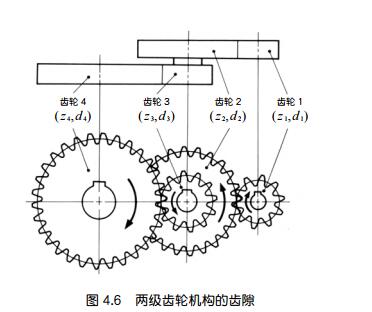 如圖 4.6 所示的兩級齒輪機構中 , 設 jt1 為第一級的圓周齒隙 , jt4 為第二級的圓周齒隙 .