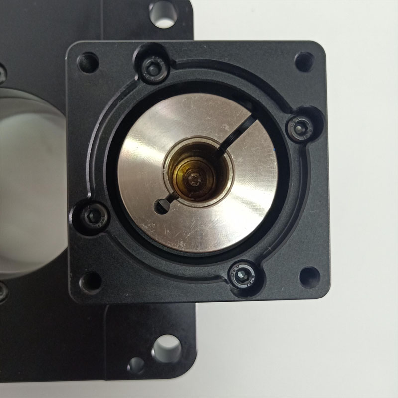 步進中空旋轉平臺采用行星減速的方式來增大輸出力矩,減速比從1至600,輸出力矩范圍較大,能夠滿足各種力矩要求的場合。另外,行星減速機構中的太陽齒同時與三個行齒接觸,加之先進的齒輪磨削工藝,使得旋轉平臺的反向側隙達到3弧分,精度媲美DD馬達。